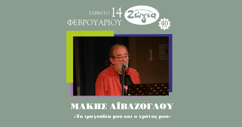 ΜΑΚΗΣ ΑΙΒΑΖΟΓΛΟΥ <<ΤΑ ΤΡΑΓΟΥΔΙΑ ΜΟΥ ΚΑΙ Ο ΧΡΟΝΟΣ ΜΟΥ>>14 ΦΕΒΡΟΥΑΡΙΟΥ ΣΤΗ ΖΩΓΙΑ!