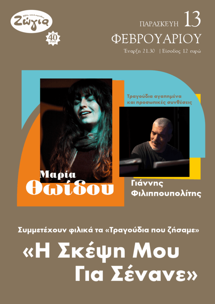 Η ΜΑΡΙΑ ΘΩΙΔΟΥ ΚΑΙ Ο ΓΙΑΝΝΗΣ ΦΙΛΙΠΠΟΥΠΟΛΙΤΗΣ 13 ΦΕΒΡΟΥΑΡΙΟΥ ΣΤΗ ΖΩΓΙΑ! Τραγούδια αγαπημένα και προσωπικές συνθέσεις με