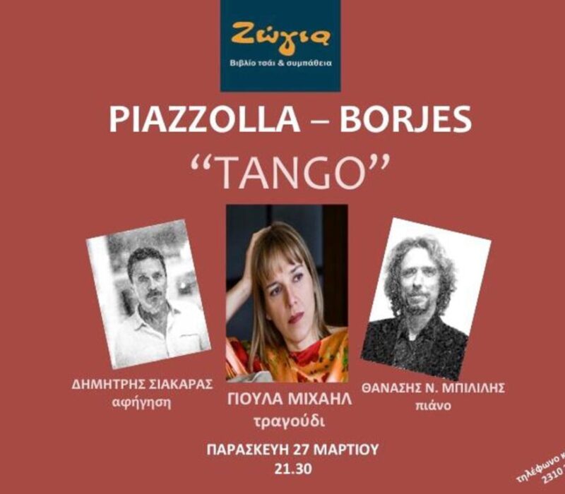 PIAZZOLLA – BORGES: “TANGO” ΔΗΜΗΤΡΗΣ ΣΙΑΚΑΡΑΣ- ΓΙΟΥΛΑ ΜΙΧΑΗΛ -ΘΑΝΑΣΗΣ Ν. ΜΠΙΛΙΛΗΣ 26/03 ΣΤΗ ΖΩΓΙΑ!