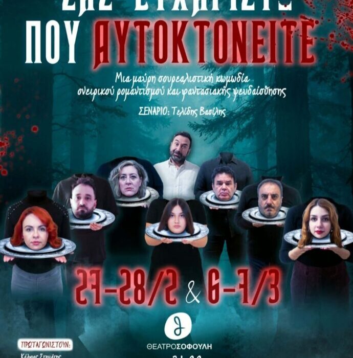 Η ΘΕΑΤΡΙΚΗ ΟΜΑΔΑ “ΑΠΟΣΤΑΤΕΣ” ΠΑΡΟΥΣΙΑΖΟΥΝ ΤΟ ΕΡΓΟ: Σας ευχαριστώ που αυτοκτονείτε Μαύρη κωμωδία Σουρεαλισμός – Ονειρικός ρομαντισμός Πρεμιέρα Παρασκευή 27 Φεβρουαρίου