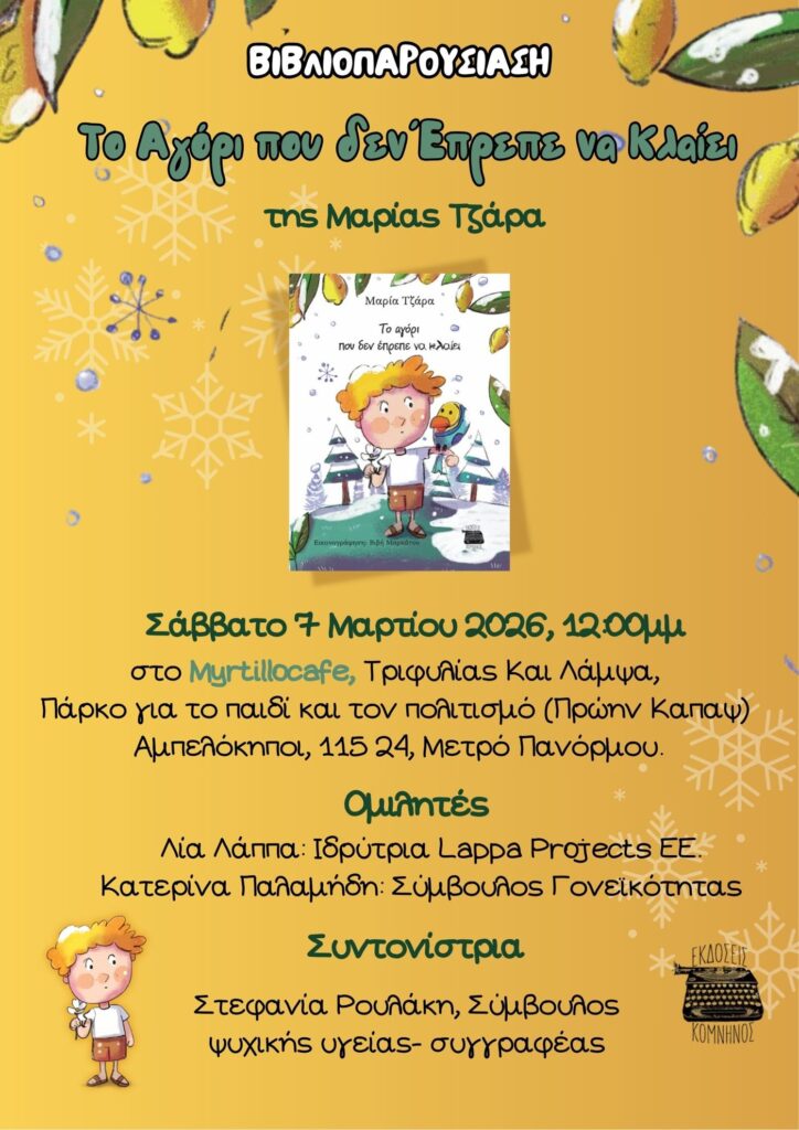 ΒΙΒΛΙΟΠΑΡΟΥΣΙΑΣΗ “ΤΟ ΑΓΟΡΙ ΠΟΥ ΔΕΝ ΕΠΡΕΠΕ ΝΑ ΚΛΑΙΕΙ” 7/3