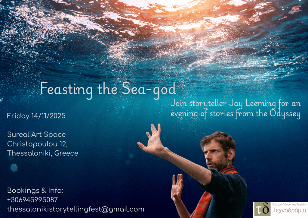 Παρασκευή 14 Νοεμβρίου, 21:00: παράσταση αφήγησης (αγγλικά) “Feasting the Sea–God: Stories from the Odyssey” με τον διεθνή αφηγητή Jay Leeming.