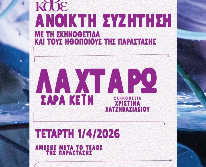 ΚΘΒΕ: ΑΝΟΙΚΤΗ ΣΥΖΗΤΗΣΗ ΜΕ ΤΗ ΣΚΗΝΟΘΕΤΙΔΑ ΚΑΙ ΤΟΥΣ ΗΘΟΠΟΙΟΥΣ ΤΗΣ ΠΑΡΑΣΤΑΣΗΣ «ΛΑΧΤΑΡΩ» | ΤΕΤΑΡΤΗ 1 ΑΠΡΙΛΙΟΥ