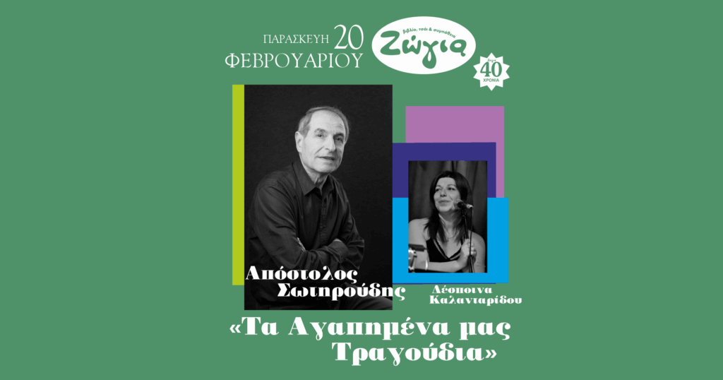 ΑΠΟΣΤΟΛΟΣ ΣΩΤΗΡΟΥΔΗΣ “ ΤΑ ΑΓΑΠΗΜΕΝΑ ΜΑΣ ΤΡΑΓΟΥΔΙΑ” 20 ΦΕΒΡΟΥΑΡΙΟΥ ΣΤΗ ΖΩΓΙΑ!