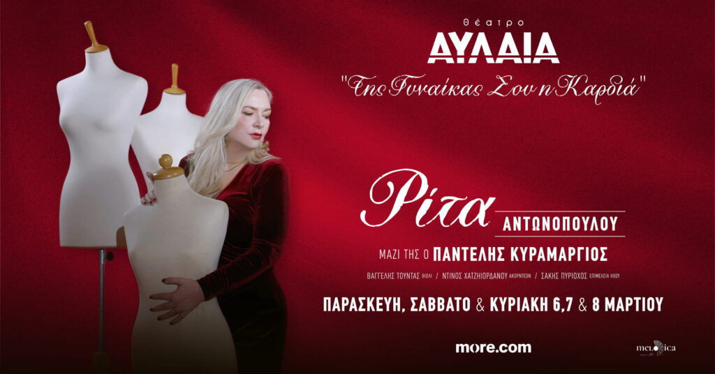 ΑΥΛΑΙΑ – Η ΡΙΤΑ ΑΝΤΩΝΟΠΟΥΛΟΥ ΣΤΗ ΘΕΣΣΑΛΟΝΙΚΗ| “ΤΗΣ ΓΥΝΑΙΚΑΣ ΣΟΥ Η ΚΑΡΔΙΑ”