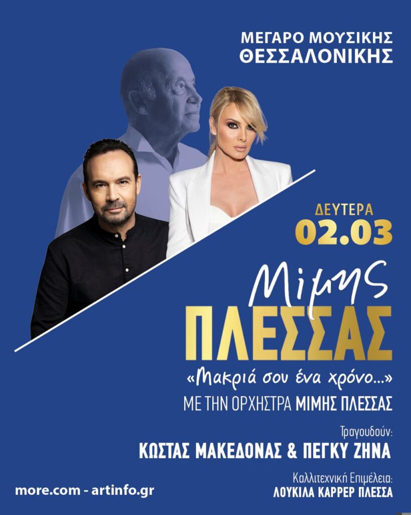 Τη Δευτέρα 2 Μαρτίου, η Ορχήστρα Μίμης Πλέσσας, που ιδρύθηκε με την προσωπική επιμέλεια του δημιουργού, παρουσιάζει ένα πρόγραμμα γεμάτο μελωδίες που αγαπήθηκαν από όλες τις γενιές. Στο τραγούδι δύο σπουδαίοι ερμηνευτές, Κώστας Μακεδόνας και Πέγκυ Ζήνα, δίνουν ζωή στα αθάνατα έργα του.