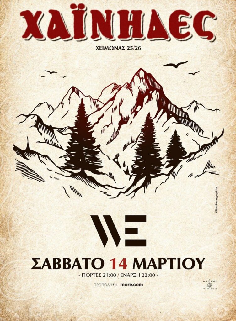 Μια κολεκτίβα αληθινής τέχνης για πάνω από τρεις δεκαετίες, οι Χαΐνηδες έρχονται το Σάββατο 14 Μαρτίου στο WE και υπόσχονται μια συναυλία με παλμό, συγκίνηση και απρόβλεπτες εναλλαγές!