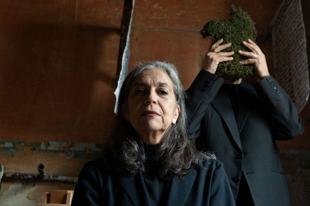 Η σκηνική σύνθεση της Μαρίας Λάππα, σε διάλογο με την αισθητική του χορού Butoh και τη ζωντανή σωματική τέχνη, διαμορφώνει ένα περιβάλλον εικαστικής γραφής όπου σώμα, φωνή και ήχος συνομιλούν με τις ψηφιακές προβολές του Αλέξανδρου Σεϊταρίδη, ενισχύοντας τη δημιουργία μίας διαρκούς μεταβαλλόμενης αφήγησης.