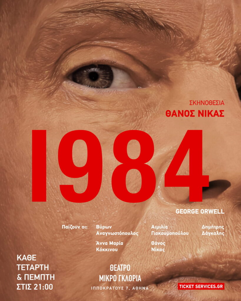 Το 1984 του George Orwell ανεβαίνει στο Μικρό Γκλόρια σε σκηνοθεσία Θάνου Νίκα για περιορισμένο αριθμό παραστάσεων, ως μια ζωντανή εμπειρία επιτήρησης, πειθαρχίας και εσωτερικής αντίστασης.