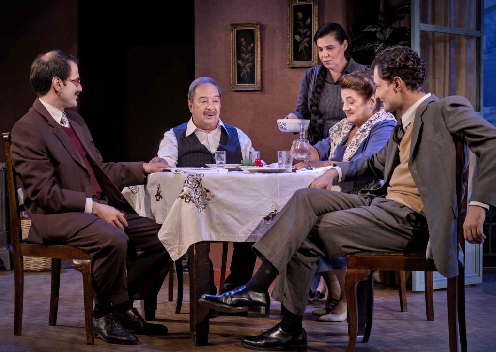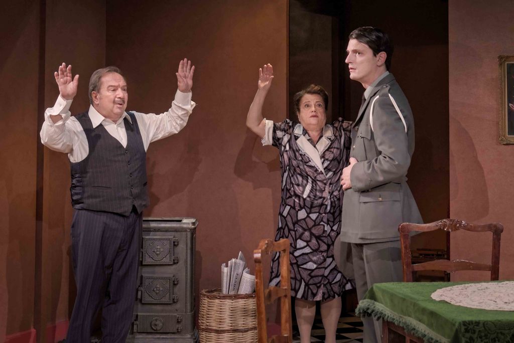 Στην παράσταση στο Μικρό Παλλάς, ο Σταμάτης Φασουλής ερμηνεύει τον κυρ-Παντελή και η Ελένη Καστάνη τη σύζυγό του, Αθηνά. Ο Απόστολος Καμιτσάκης είναι ο Σταύρος, ο δεξιός γιός και ο Γιώργος Βουρδαμής, είναι ο Κώστας, ο αριστερός γιός.