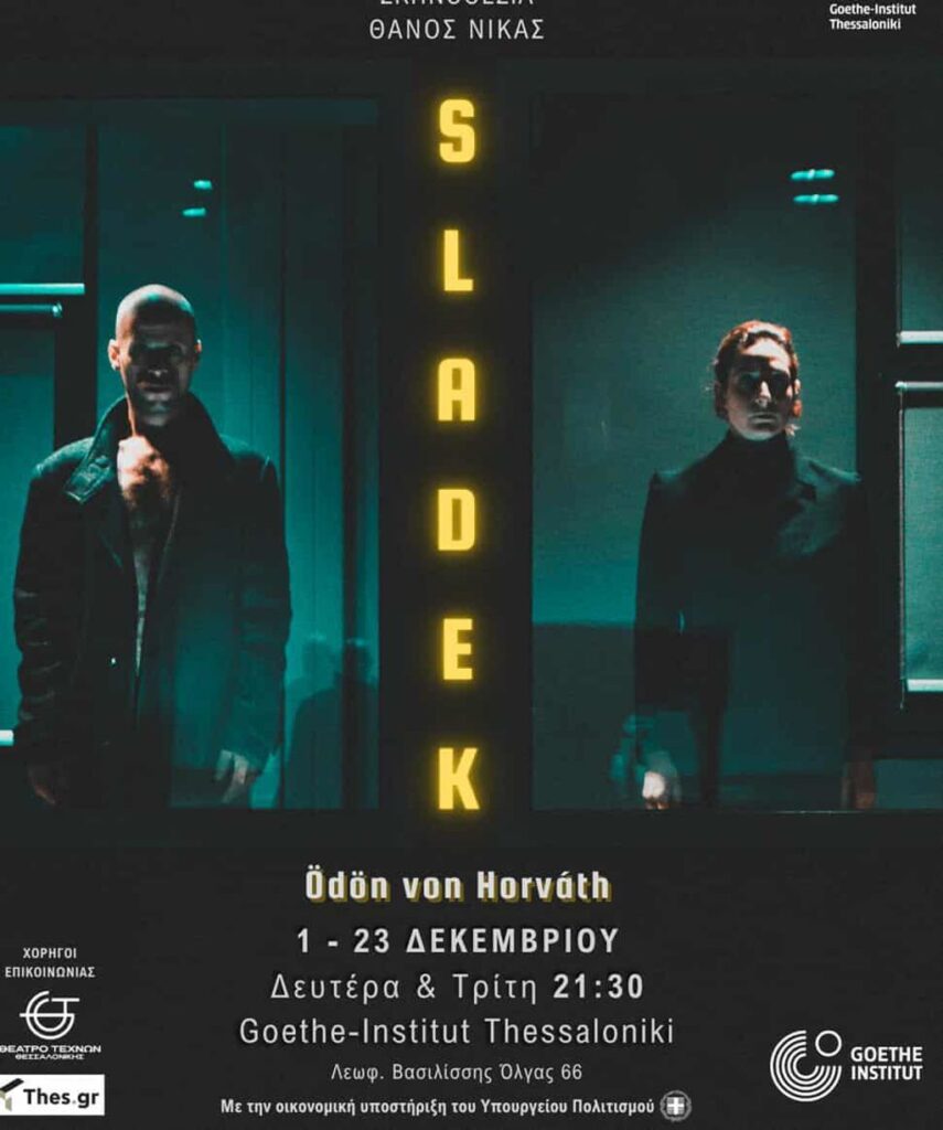 Η παράσταση Σλάντεκ πραγματοποιείται υπό την αιγίδα και με την οικονομική υποστήριξη του Υπουργείου Πολιτισμού και του Goethe-Institut Thessaloniki.