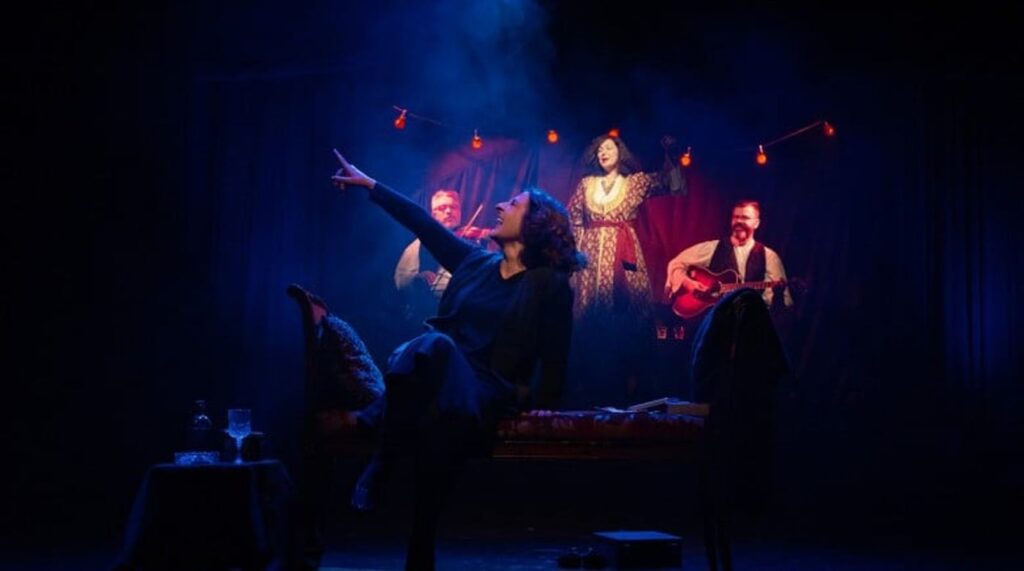 Το ερώτημα, επομένως, δεν αφορά τόσο το ποια ήταν η Ρόζα, όσο το πώς μπορεί να υπάρξει σήμερα επί σκηνής: ως ιστορική μορφή, ως μουσικός μύθος ή ως γυναίκα που κουβαλά στο σώμα της σαν άλλος Σίσσυφος τον βράχο της μνήμης που συντίθεται από την ξενιτιά, τους έρωτες, την απώλεια και την άρρητη ψυχική ανθεκτικότητα; Η παράσταση «Ρόζα Εσκενάζυ – Η Βασίλισσα του Ρεμπέτικου» επιλέγει συνειδητά την τρίτη διαδρομή, μετατοπίζοντας το ενδιαφέρον από την εγκυκλοπαιδική αφήγηση στη βιωμένη εμπειρία· από τη χρονολογική καταγραφή στη σκηνική αναμέτρηση με τη φθορά, την έκθεση και την επιβίωση. Και αυτή η επιλογή μετατοπίζει το βάρος από το βιογραφικό γεγονός στη ζωντανή εμπειρία του θεάτρου.