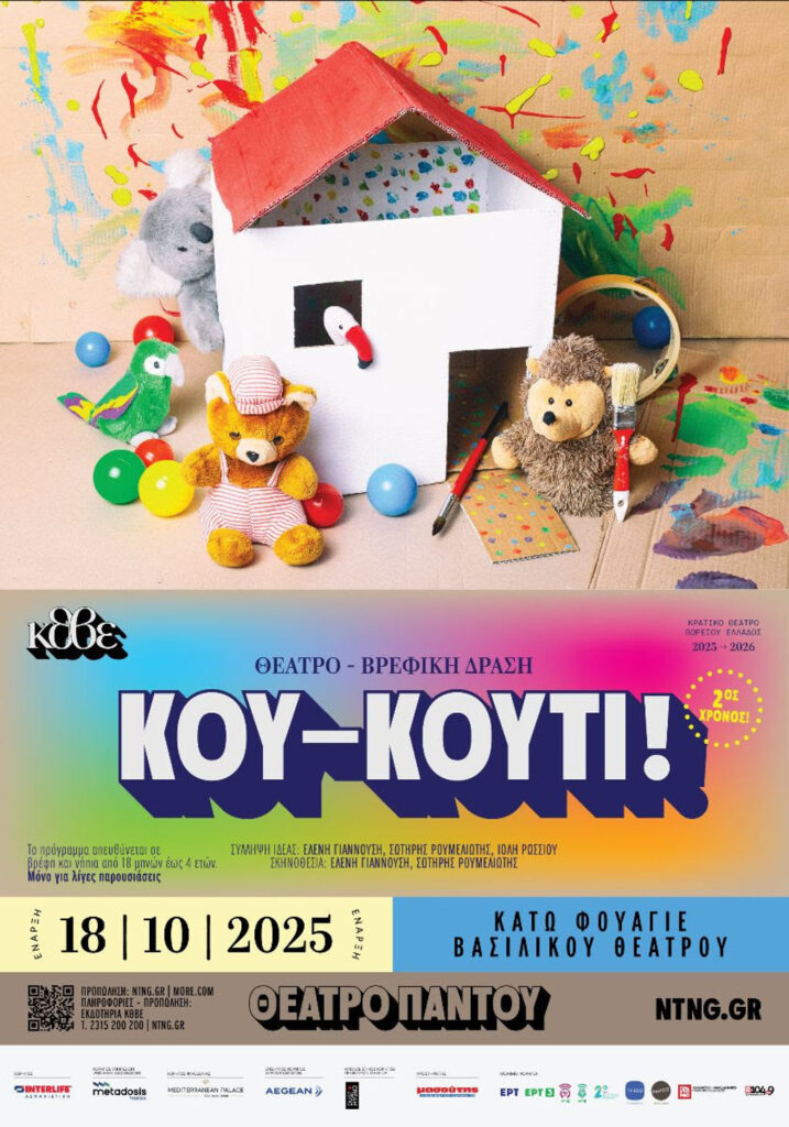 ΚΘΒΕ: “ΚΟΥ-ΚΟΥΤΙ!”. ΘΕΑΤΡΟ – ΒΡΕΦΙΚΗ ΔΡΑΣΗ. ΣΚ.: Ε. ΓΙΑΝΝΟΥΣΗ- Σ. ΡΟΥΜΕΛΙΩΤΗΣ. ΑΠΟ 18/10 ΒΑΣΙΛΙΚΟ ΘΕΑΤΡΟ
