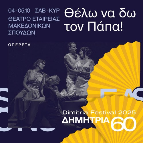 • Η οπερέτα «Θέλω να δω τον Πάπα», σε μουσική διεύθυνση του Νίκου Βασιλείου και σκηνοθεσία της Νατάσας Τριανταφύλλη, μια παραγωγή της Εθνικής Λυρικής Σκηνής με τη συμμετοχή της Συμφωνικής Ορχήστρας του Δήμου Θεσσαλονίκης, στις 4 & 5 Οκτωβρίου.