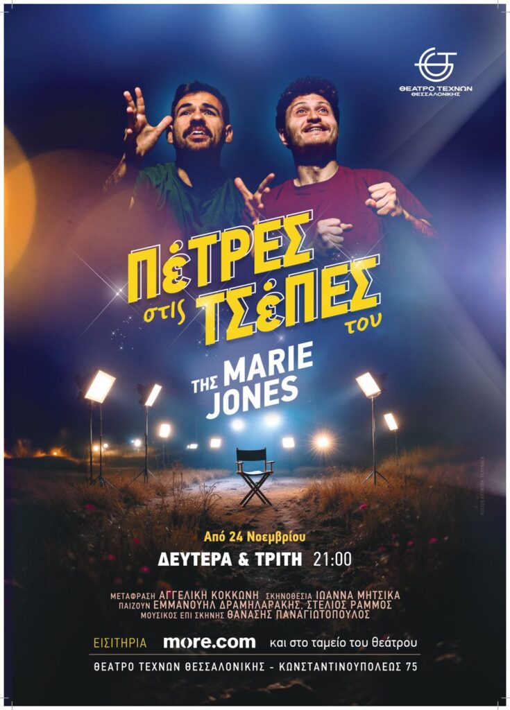 Ο λόγος για το «Πέτρες στις τσέπες του», τη βραβευμένη κωμωδία της Ιρλανδής συγγραφέως Marie Jones που σχολιάζει τη βιομηχανία του Χόλυγουντ και τις ψευδαισθήσεις που καλλιεργεί, η οποία ανεβαίνει για έξι μόνο παραστάσεις στο Θέατρο Τεχνών, σε σκηνοθεσία Ιωάννας Μήτσικα, με τους Εμμανουήλ Δραμηλαράκη, Στέλιο Ράμμο και τον μουσικό Θανάση Παναγιωτόπουλο.