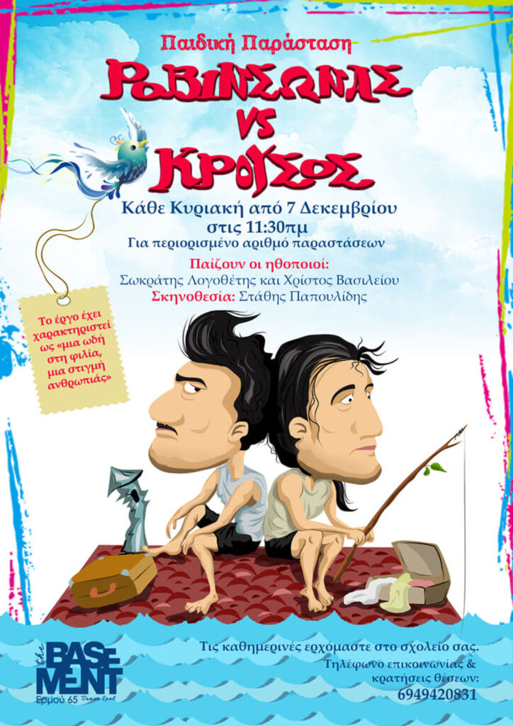 «ΡΟΒΙΝΣΩΝΑΣ VS ΚΡΟΥΣΟΣ» : ΠΑΙΔΙΚΗ ΘΕΑΤΡΙΚΗ ΠΑΡΑΣΤΑΣΗ – ΚΑΘΕ ΚΥΡΙΑΚΗ ΣΤΟ THE BASEMENT SPOT ΓΙΑ ΠΕΡΙΟΡΙΣΜΕΝΟ ΑΡΙΘΜΟ ΠΑΡΑΣΤΑΣΕΩΝ