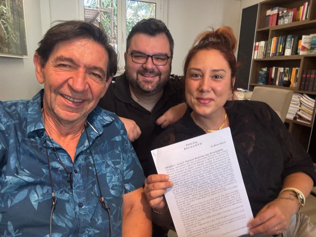 μαζί του οι: Δημήτρης Κωνσταντινίδης, Ελένη Θεοχάρη, Κωνσταντίνος Μπάρκος