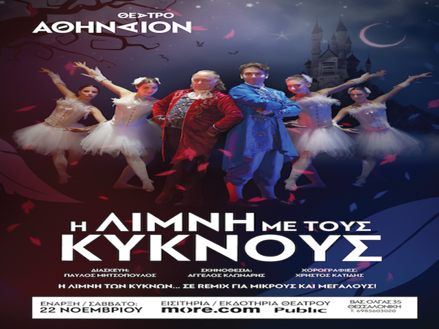 Η Λίμνη με τους Κύκνους, είναι μία χορευτική θεατρική παράσταση βασισμένη στο κλασικό παραμύθι και ωραιότερο μπαλέτο όλων των εποχών. Αθάνατες μελωδίες της κλασικής μουσικής, σύγχρονες ποπ συνθέσεις, διαφορετικά είδη χορού και ένας δωδεκαμελής θίασος συνθέτουν το απόλυτο must-see θέαμα τόσο για τους μικρούς, όσο και για τος μεγάλους φίλους του θεάτρου!