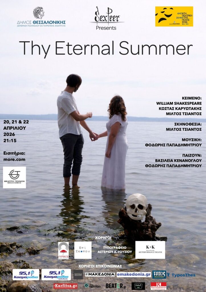 Το«Thy Eternal Summer» θα παρουσιαστεί στις 20, 21 & 22 Απριλίου στο Θέατρο Τεχνών, στο πλαίσιο του Φεστιβάλ της Ανοιχτής Θεατρικής Σκηνής 2026 που διοργανώνει ο Δήμος Θεσσαλονίκης.